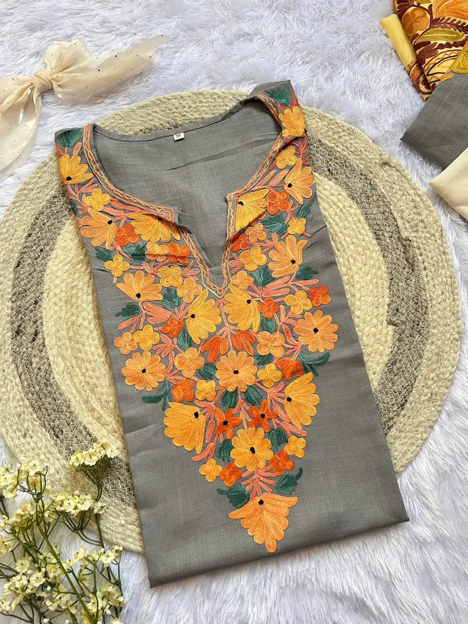 ऐश ग्रे कश्मीरी लॉन्ग कुर्ता