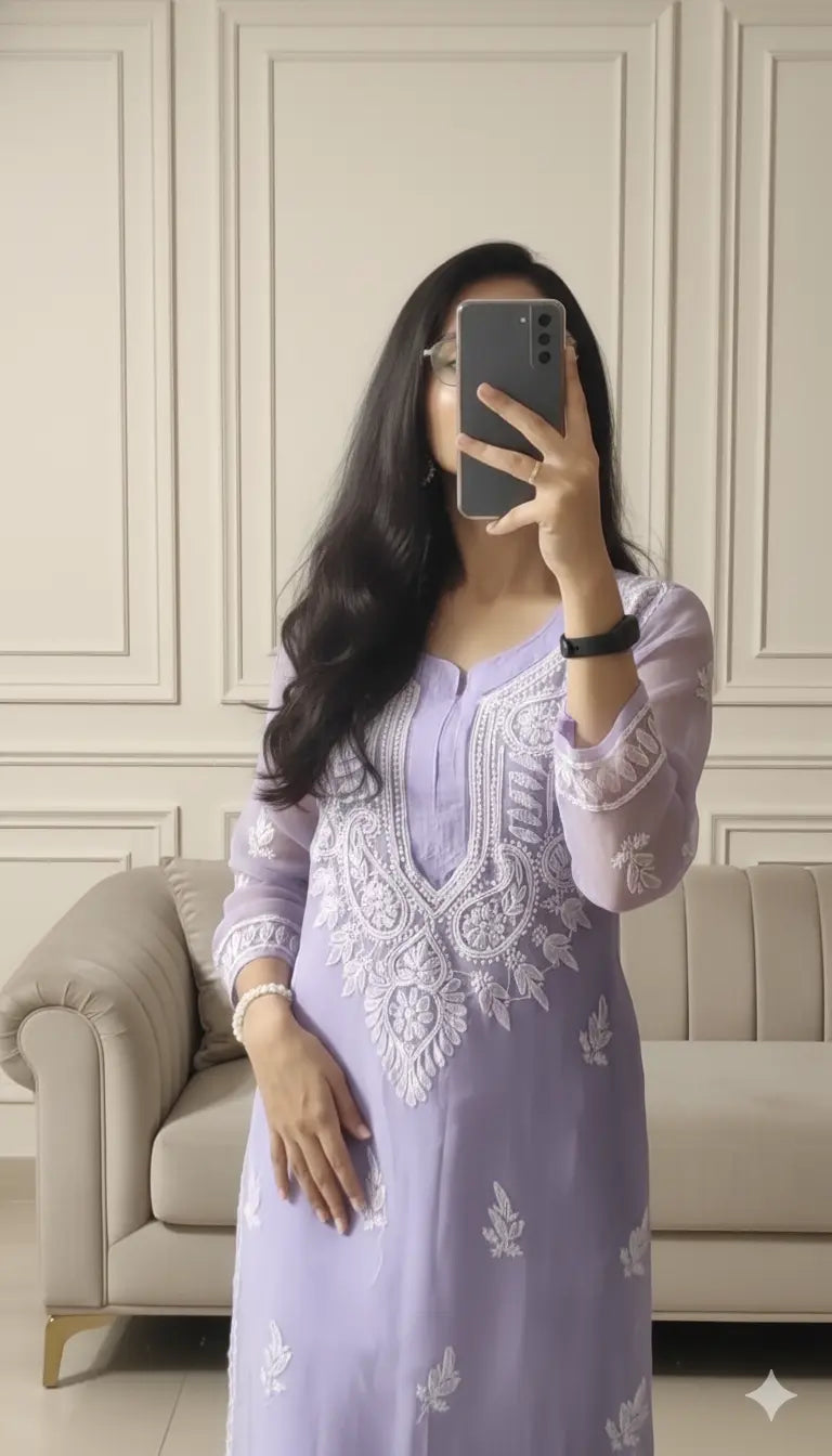 अयेना लैवेंडर जॉर्जेट चिकनकारी कुर्ती