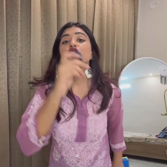 अयेना मौवे जॉर्जेट चिकनकारी कुर्ती