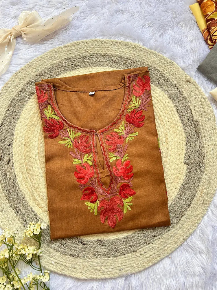 भूरे रंग का कश्मीरी लंबा कुर्ता