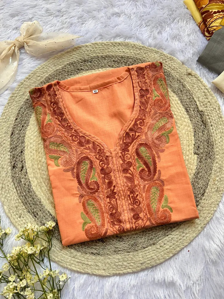 केरी पीच कश्मीरी लॉन्ग कुर्ता
