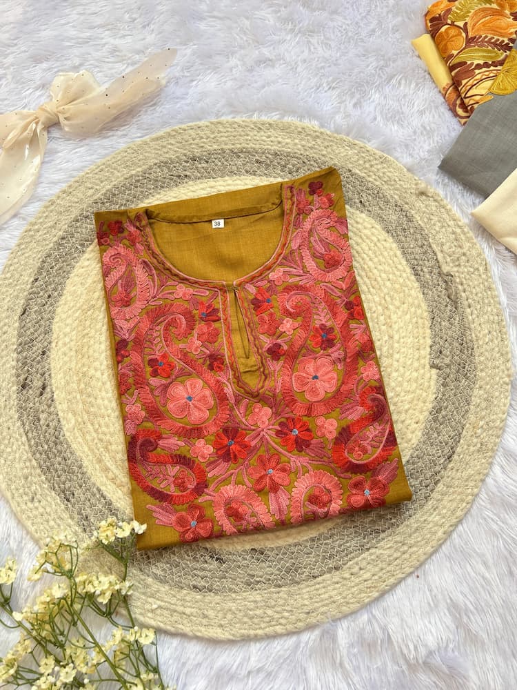 - कढ़ाई: बारीक कारीगरी के साथ प्रामाणिक कश्मीरी आरी कढ़ाई