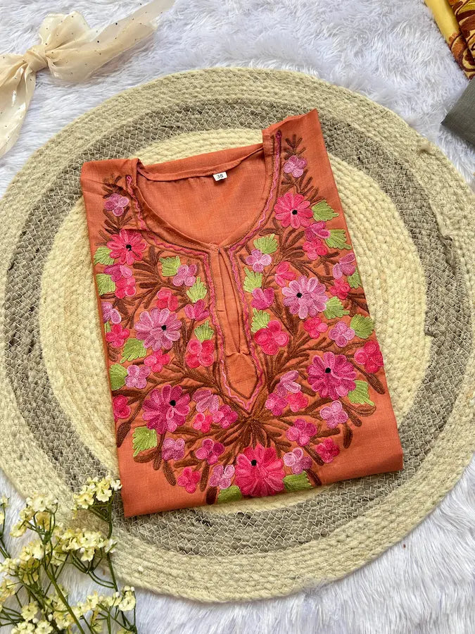 ब्लॉसम पीच कश्मीरी लॉन्ग कुर्ता