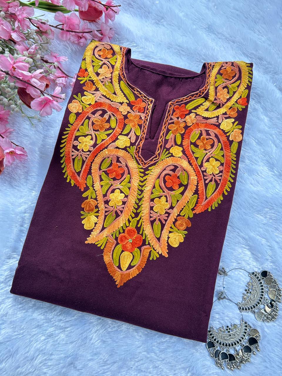 हयात के लखनवी चिकनकारी कश्मीरी ऊनी आरी वर्क फेरन के साथ शाश्वत सुंदरता में गर्माहट का आनंद लें - आराम, संस्कृति और शिल्प कौशल का एक शानदार मिश्रण।