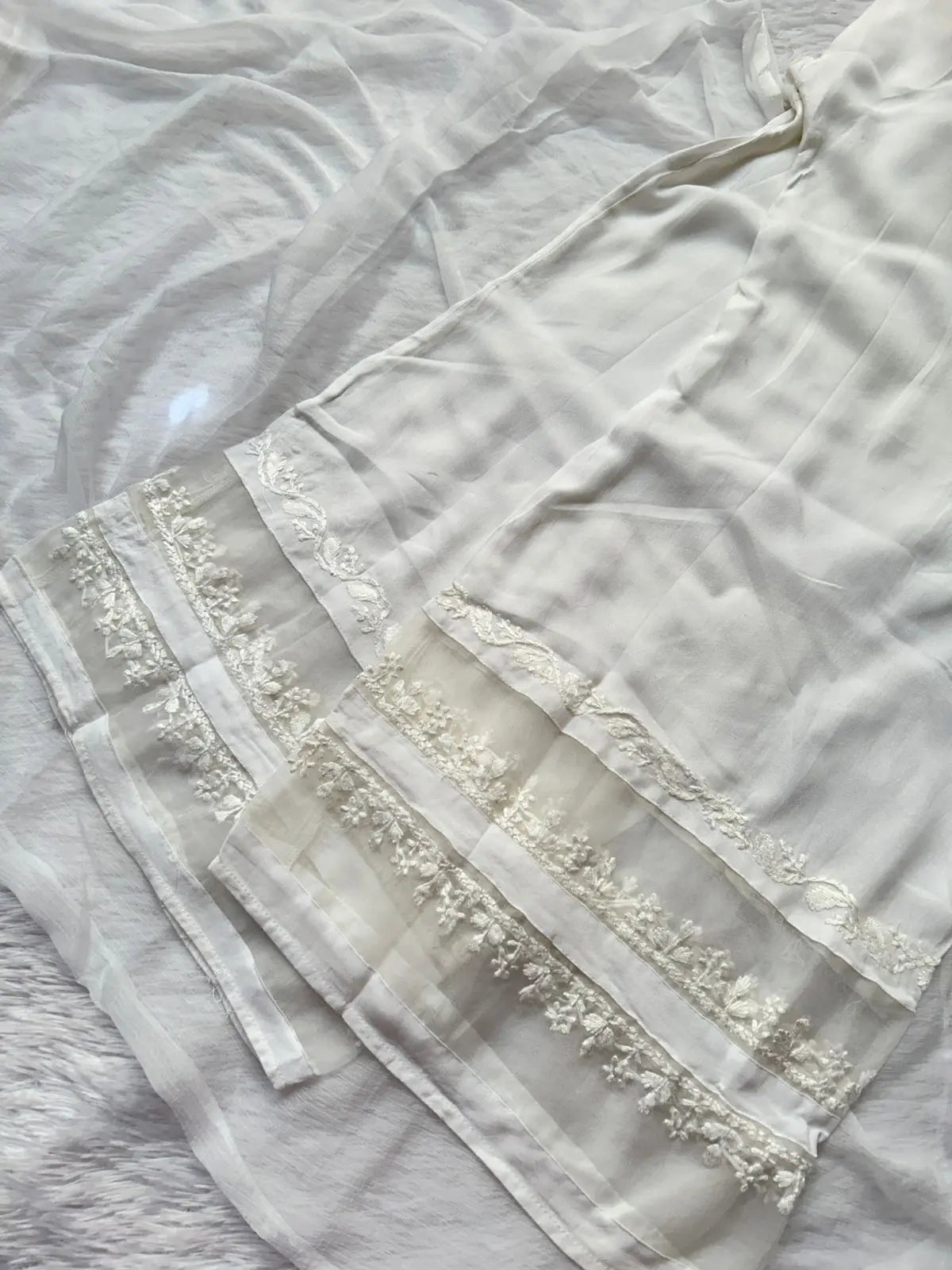 This 3-piece set includes a straight-cut kurta, comfortable plazo, and dupatta designed for effortless elegance and all-day comfort. The lightweight georgette fabric gives a smooth fall, making it perfect for long wear without compromising on style.