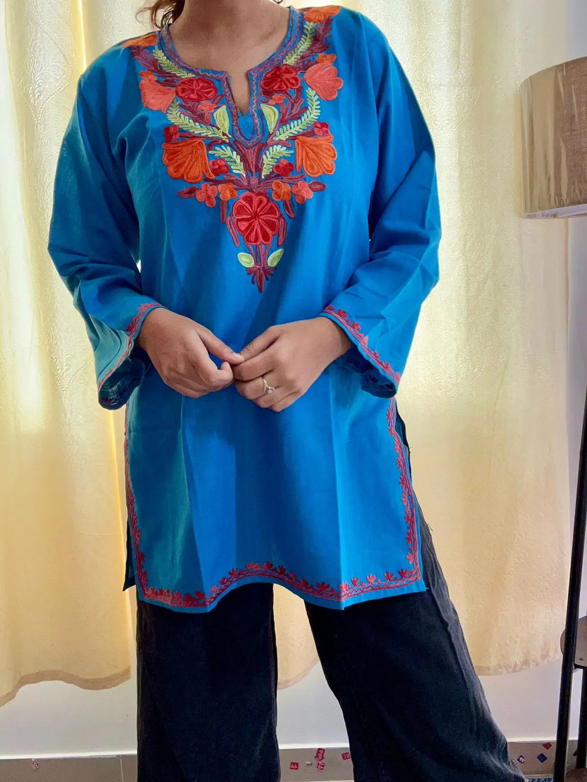 - Embroidery: Traditional Kashmiri aari work, handmade by skilled artisans