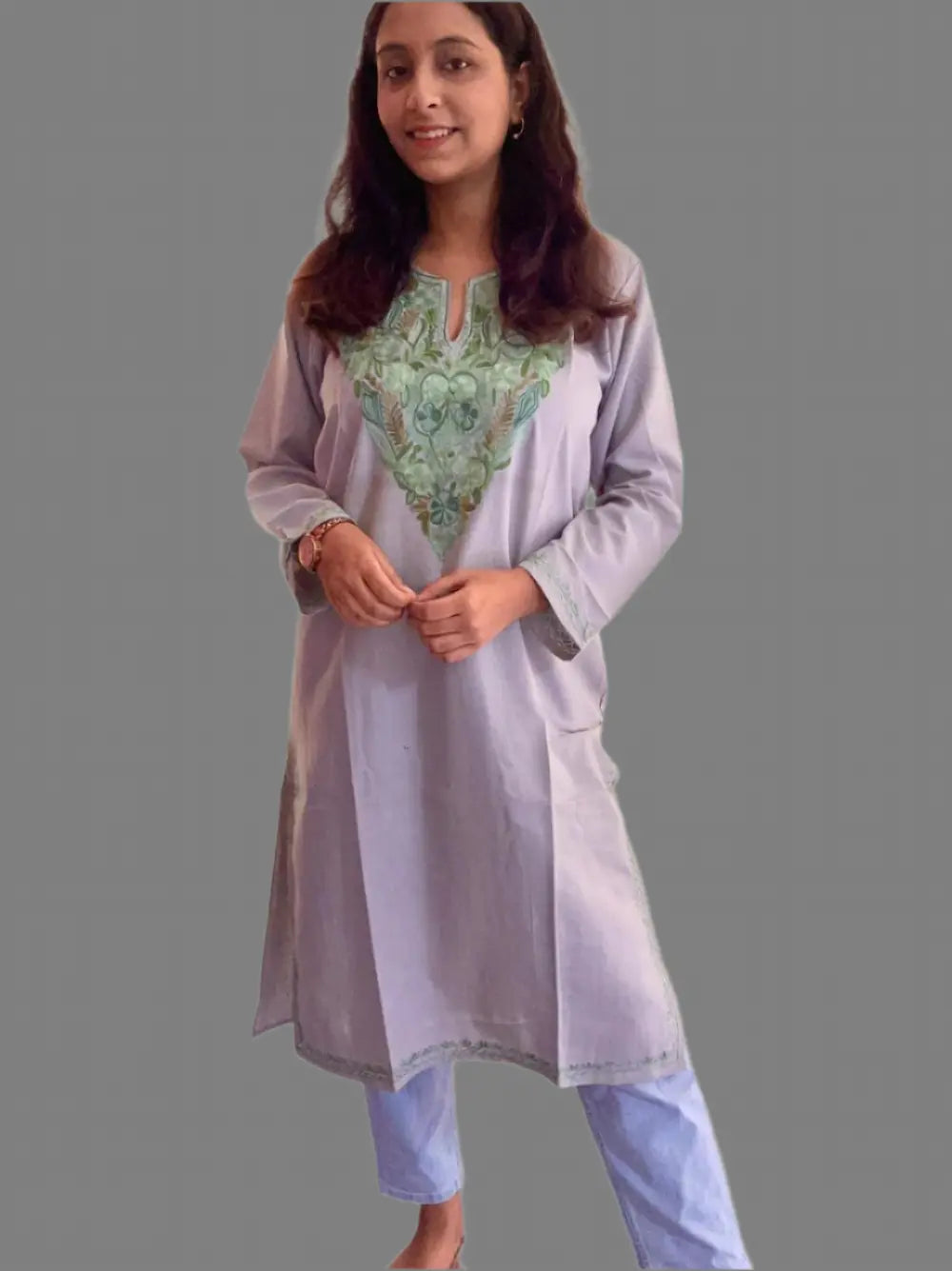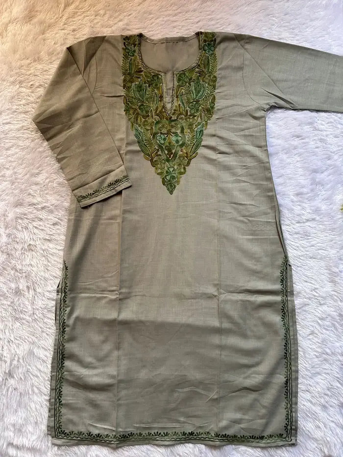 Blossom Gray Kashmiri Long Kurta
