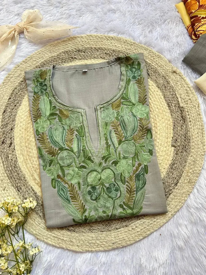 - Embroidery: Handcrafted Kashmiri aari work with fine detailing